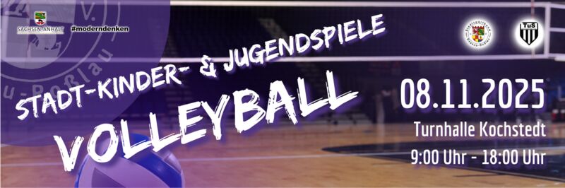 Am 08.11. laden der SSB Dessau-Roßlau e.V. und der TuS Kochstedt e.V. zu den Stadt Kinder- & Jugendspielen Volleyball ein.