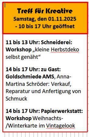 Im Rahmen der Aktion "Heimat shoppen" ist auch Doreens kreative Schneiderei in der Muldstr.88 in 06844 Dessau-Roßlau geöffnet. Zwischen 10 und 17 Uhr kann man in Ruhe stöbern und kaufen. Außerdem finden zwei Workshops statt. Am Nachmittag ist Goldschmiede AMS Anna-Martin Schöder zu Gast.