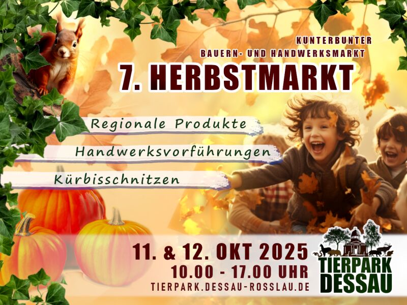 Erlebt den Herbst im Tierpark Dessau. Euch erwartet ein buntes Markttreiben mit traditionellem Handwerk und regionalen Spezialitäten.