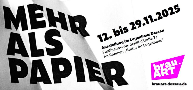Papier ist eines der ältesten und vielseitigsten Materialien der Menschheitsgeschichte. Mit der Ausstellung zum Thema "MEHR ALS PAPIER" lädt der brau.ART e. V. ein, die Vielfalt an Kunstwerken zu erleben, die ausschließlich aus verschiedenen Arten von Papier geschaffen wurden. Entdecken Sie die feinen Linien der Zeichnungen, die Kreativität der Druckkunst, die lebhaften Erzählungen der Illustrationen, die überraschenden Kompositionen der Collagen, die Wandelbarkeit von Faltungen und die ausdruckstarken Farbkompositionen der Malerei. Jedes Kunstwerk zeigt, wie unterschiedlich und innovativ Papier in den Händen von Künstlerinnen und Künstlern eingesetzt werden kann.